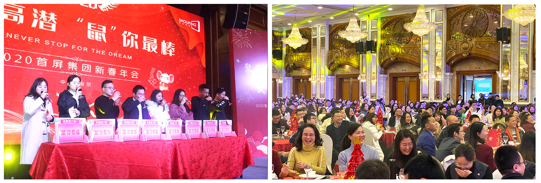 2020年1月19日,“聚焦高潛 鼠你最棒”——2020首屏集團新春年會在維景國際大酒店圓滿落幕!首屏集團南京、南通地區(qū)的近700名同學(xué)相聚一堂,共話團圓、喜迎新春。熱鬧喜慶的會場,精彩紛呈的表演、歡樂趣味的游戲、動人心魄的抽獎...讓年會格外熱鬧、驚艷?,F(xiàn)場的每個角落都充斥著新春的喜悅,每個人臉上都洋溢著快樂的笑容,每個瞬間都成為大家心中美好的回憶。