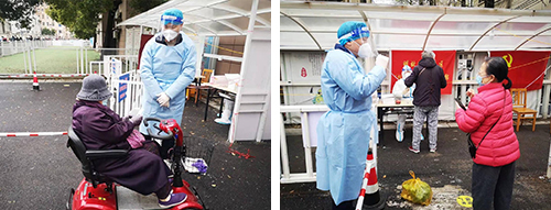 由于近期南京接連不斷的陰雨以及驟降的氣溫,給市民采集核酸帶來一些不便,面對個別市民因排隊時間久而產(chǎn)生的抱怨與不理解,他們細(xì)心講解、耐心開導(dǎo)、貼心安撫大家的情緒,確保核酸檢測工作有條不紊地進(jìn)行。